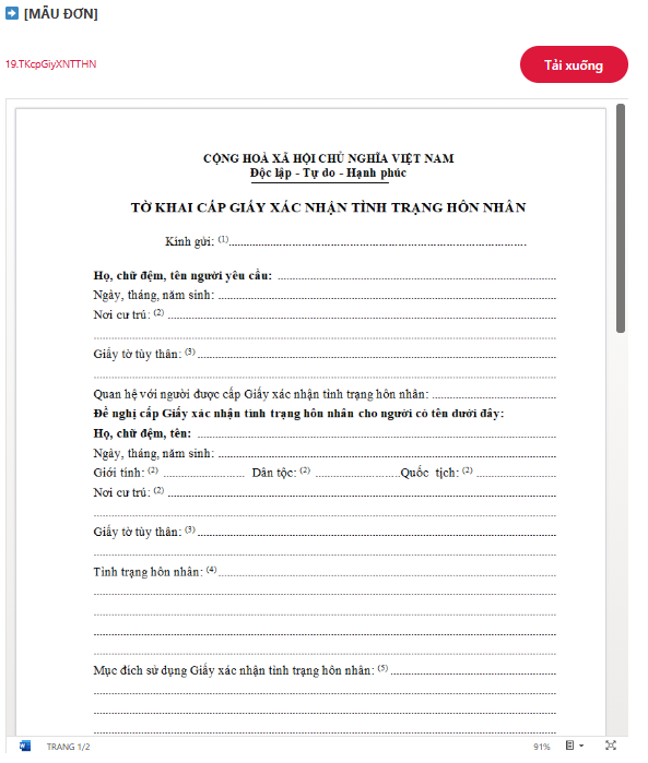 Tất cả biểu mẫu được rà soát, đối chiếu với cơ sở dữ liệu thủ tục hành chính của tỉnh Lâm Đồng, đảm bảo đúng quy định, đúng phiên bản mới nhất. Các mẫu đơn được cung cấp dưới dạng file PDF và Word, thuận tiện cho người dân tải xuống và sử dụng.